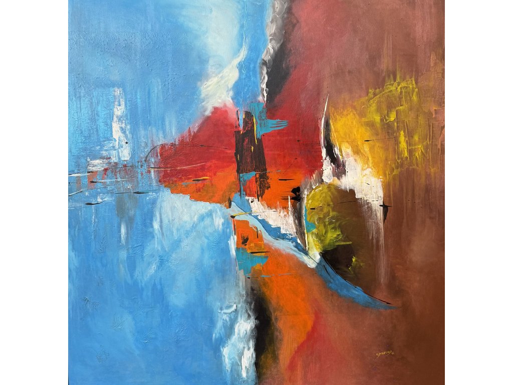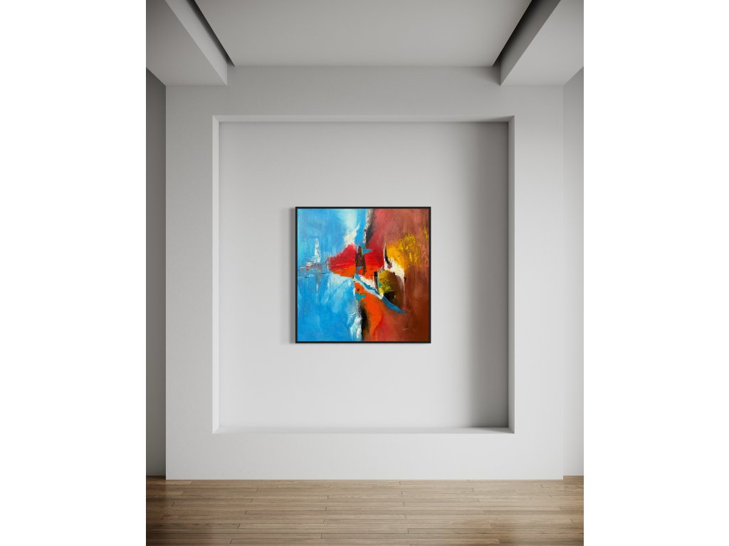 Print obrazu s názvem „Úhel pohledu“ přináší divákovi výzvu – podívat se na svět z jiného, netradičního úhlu. Například z úhlu pohledu toho druhého když se odosobníme. Co z jednoho úhlu může někomu přijít nesympatické pro druhého může být geniální pohled na věc. Dynamická hra barev a tvarů na plátně vytváří iluzi proměnlivého prostředí, kde každý pohled odhaluje něco nového. Modré odstíny evokují nekonečné nebe nebo hlubokou vodu, zatímco teplé tóny červené a oranžové přinášejí energii a živost.